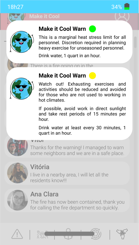 Also, after informing us of your location through your account registration, you will have access to a chat with people living in the same area. This chat will serve for alerts of other impacts by message, such as forest fire warnings.